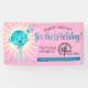 Niedlicher Springball aus Garn mit Häkelhaken auf diesem Weihnachtshandwerk zeigt Banner für Häkelprojekte, hausgemachtes Garn oder andere komfortable Handwerkskunst, personalisiert mit Ihrem Text und Logo, sowie Ihre Wahl der Farbe.