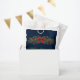 Desteis originelle Illustration einer festlich grünen Tannenbaumgarage, die mit einem großen roten Bogen, roten Weihnachtsbaumleuchten und einigen Lichtern der Imitate geschmückt ist. Die Hintergrundfarbe ist dunkelblau. Es gibt auch zwei personalisierbare Textbereiche.