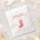 Eine hübsche Weihnachtsgeschenktasche mit einem Weihnachtsgeschenk, Polka-Punkten und den Worten"Möge Ihre Weihnachtszeit mit Freude gefüllt werden" Perfekt zum Füllen mit Weihnachtsnachten Leckereien, um Nachbarn, Mitarbeitern und Freunden zu geben. Entworfen für Sie von BlackBerry Boulevard.