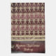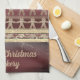 Auf diesem festlichen Küchentuch sind Reihen von Lebkuchengebäck auf einem bordeauxroten Hintergrund mit Personalisierung an der Spitze des Designs mit zusätzlichem Glanz für extra Glanz. Fröhliche Weihnachten zum Thema Backen in der Küche