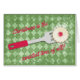 "aus der Küche der" kulinarischen Weihnachtskarte mit Spatel und Gelee gefüllt Keks mit Puderzucker auf einer schäbigen grünen Folie und Schneeflocken Hintergrund für Bäcker und Köche, die Liebe geben ihre Liste mit süßen Feiertagen Leckereien.