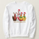 Erleben Sie den festlichen Geist mit diesem skurrilen Hühnerpullover. Dieses Sweatshirt mit fünf fröhlichen Hühnern, die mit Weihnachtsmannmützen, Feenlampen und Rentierern geschmückt sind, ist perfekt für Weihnachtsliebhaber. Ideal für Farm-Liebhaber, Geflügelfans oder alle, die eine Liebe für abwechslungsreiche Urlaubsmode haben. Tragen Sie es auf Feierlichkeiten, Ansammlungen oder einfach nur um festliche Feier zu verbringen. Es ist eine lustige und leichtsinnige Art, die Saison zu feiern und Ihre Liebe für Tiere und Ferien zu präsentieren.