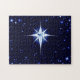 Der Stern von Bethlehem glänzend hell im Raum bereit, die 3 klugen Männer und Schäfer zum neugeborenen Baby Jesus zu führen.