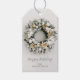 Schöne Geschenketiker verfügen über einen schneebedeckten Kiefernkranz, der mit Weihnachtsbaumschmuck und Blume mit einem Gruß und Ihrem Namen oder Firmennamen geschmückt ist. PASSENDE Artikel in unserer Sammlung.