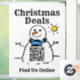 QR-Code-Fenster-Zeichen Weihnachten. Finden Sie uns online. Bild ist ein Snowman mit QR-Code. Weihnachtsgeschäfte.