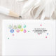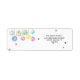 Festliche Dekoration Weihnachtsaufkleber mit Rücksendeadresse. Das Aquarellbild ist ein buntes Weihnachtsbaumkugelspielzeug mit roten, grünen und blauen Konfetti.