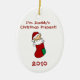 Sie können die Rückseite personifizieren und das Datum Andenkenverzierung dieses niedlichen Babys zu ändern an der ersten Weihnachts, dieein Baby in einem roten WeihnachtsStrumpf- und -kinderarttext kennzeichnet, der "mich liest, sind Weihnachtsgeschenk des Vatis!"