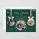 Mit dieser festlichen Postkarte mit handgezeichnet Bögen, die drei Ihrer liebsten Fotos in runden Rahmen krönen, verbringen Sie Feiertagsjubeln - und schaffen so das Aussehen festlicher Weihnachtsschmuck. Die elegante grün-weiße Weihnachtspostkarte enthält "Frohe Weihnachten" in einem handgeschriebenen Skript-Schriftart und Ihren eigenen Familiennamen; auf der Rückseite können Sie eine benutzerdefinierte Nachricht und eine Rücksendeadresse hinzufügen.