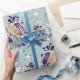 Weihnachts Retrogeschenk bunt Geschenk Bogen blau pinkfarbene Schneeflocken Neujahr Glitzer Spaß Urlaubsmuster Rosa Gold