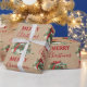 Eine Vintage Illustration eines Weihnachtsgeschenks mit allen Beschneidungen mit kraftbraunem Papierhintergrund. Ideal für Weihnachtsgeschenke und Dekoration.