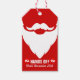 Weihnachtsverpackung Geschenkmarke in warmen Rot und Weiß. LEST HÄNDE AUS bis zum 25. Dezember, lustige kühnen Weihnachtsbart / Vater Weihnachten und ein unberührbares handsigniertes grafisches Weihnachtsgeschenk gedruckt. Personalisieren Sie mit Ihrem eigenen Gruß und Namen auf der Rückseite. Grafik und Design von Sarah Trett.