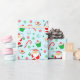 Kreatives Weihnachtsmuster für den Fischfang mit einem Ornament am Haken, umgeben von Leckereien.
