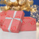 Designer-Geschenkpackung, modernes und stilvolles Kunstdesign in Grüntöne, Rot und Korallen. Der Text kann alle mit Ihrem eigenen Urlaubssgruß personalisiert werden. Der Text ist ebenfalls abnehmbar.