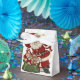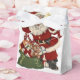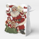 Zelt-Stil mit weißem Band Gefälligkeitskasten mit einem Vintagen Bild aus den 40er Jahren, vorne und hinten, von fröhlich Saint Nick mit einer Tasche voller Spielzeuge und mit einer Schachtel Weihnachtsjubelung im Schneefall. Siehe dazu passende Grußkarte, Umschlag, Konfetti, Bevorzugung Tag, Geschenktaschen, Etikett, Rundaufkleber, individuell zugeschnittene Vinyl-Aufkleber und Packpapier. Siehe die gesamte Holiday Favor Box-Sammlung in den SONDERN-TOUCHS | Abschnitt Gastgeschenke.