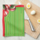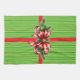 Ein grüner und goldgestreifter Hintergrund, helle rote Bänder und ein schöner rot-weißer Bogen mit immergrünen Sprigs kleiden dieses Küchentuch wie ein Weihnachtsgeschenk. Niedlich, lustig, festlich und perfekt für Ihren Urlaub Zuhause!