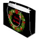 Die Geschenktasche aus Papier wird in schwarz mit einem festlichen Urlaubskreidedruck gezeigt. Große Größe angezeigt. Passen Sie diese Geschenktasche an oder kaufen Sie, wie es ist.