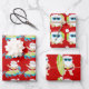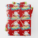 Ein Trio aus Geschenkpackungen, jedes mit einem anderen Design auf ist ideal für Ihr blaues und weißes Weihnachtsthema im Sommer. Auf dem ersten Blatt reitet Pater Weihnachten auf einem Surfbrett durch die blaue Welle mit seiner Weihnachtsmannmütze und schwarzen Gürtel mit roten Hosen. Der zweite hat den Weihnachtsmann auf einem Brett liegend, der auf einem roten Hut und einer blauen Sonnenbrille gegen dich reitet, und der dritte bringt ihn stehend dazu, eine Pose zu treffen, in der er sein grünes Brett neben sich hält. Alle Weihnachtsmänner sind Set vor einem lebendigen, roten Hintergrund. Diese lustigen und modernen Verpackungsmuster sind ideal für Ihre Familie. Freunde und Kollegen am Weihnachtsfeiertag.