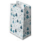 Diese Weihnachtsgeschenktasche wird in einem festlichen Winterbäumprint gezeigt. Kleine Größe angezeigt Glossar angezeigt