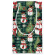 Diese Weihnachtsgeschenktasche wird in einem festlichen Schneemobil gezeigt. Karierter Schneemann Kleine Größe Glossgrün angezeigt