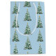 Die Geschenktasche aus Papier wird in blau mit einem festlichen Weihnachtsbaumprint gezeigt. Passen Sie diese Geschenktasche an oder kaufen Sie, wie es ist.