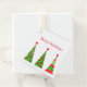 Dieses Geschenkschild wird mit einem festlichen Weihnachtsbäumprint gezeigt. Passen Sie dieses Objekt an oder kaufen Sie, wie es ist. Börsenbild vecteezy.com