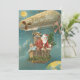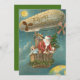 Der Weihnachtsmann kommt in seinen Heißluftballon. Dieser Weihnachtsausdruck zeigt den Weihnachtsmann in einem Heißluftballon mit einem Haufen Geschenke und einem Weihnachtsbaum.
