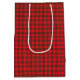 Weihnachtsgeschenktasche in festlich roter karierter Printgestaltung. Passen Sie dieses Objekt an oder kaufen Sie, wie es ist. Stock Image freepik.com all-free-download.com