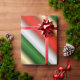 Ein buntes Weihnachtspapier mit diagonalen Streifen in den traditionellen Weihnachtsfarben Rot, Grün und Weiß.
