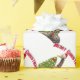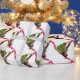 Adorable WeihnachtsGiraffe mit seiner Weihnachtsmannmütze und verziertem Weihnachtsbaum - er platziert den Stern auf den Baum