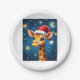 WeihnachtsGiraffe Weihnachtsmannmütze Starry Night Pappteller