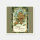 Eine Weihnachtsglocke aus dem Jahrtausend ist auf einem Zierrahmen mit blauen und weißen vergessenen-nicht-Blume und Kiefernzapfen auf verschneiten Zweigen vor grünem Hintergrund eingefasst. Gruß: Frohe Weihnachten für dich. Bild von Vintage Weihnachtspostkarte mit einer benutzerdefinierten dunkelgrünlich gelben Rahmen.