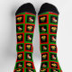 Weihnachtsglocken in grünen und roten Plätzen auf schwarzen Crews Socken