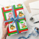 Weihnachtsglocken, Poinsettia, Elchen auf grün und Geschenkpapier