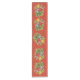 Weihnachtstischläufer mit großen, lebhaften Glocken in Rot, Blau, Gold auf Heiligen und Beeren mit rotem Hintergrund.