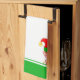 Weihnachtsglocken und Niedlicher Elf auf Grün und Geschirrtuch