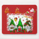 Ein Weihnachtsmäusenpad in Rot mit Gnomen und Weihnachtsmann, der überfliegt