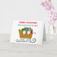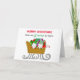 Niedliche Hand gezeichnete Weihnachtsgnomen in einem Winter Schlitten voller Geschenke, Frohe Weihnachtskarte.