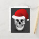 Ein Schädel mit einem Hut aus dem Weihnachtsmann auf tiefgrauem Hintergrund. Ein festlicher Weg für jeden gotischen Liebhaber Weihnachten zu feiern.