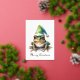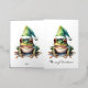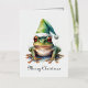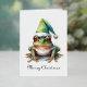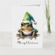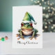 Aquarellmalerei eines grünen Frosches mit einem grünen Winterhut im Weihnachtsstil