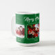 Die reiche Weihnachtsgrün-Farbe auf dieser Tasse sticht hervor und der weiße, verzierte Text darauf feiert Weihnachten. Drei Ihrer Lieblingsfotos sind gerahmt, mit Beschriftungen darunter. Eine schön einfache Tasse, die Ihre Familienerinnerungen teilt.