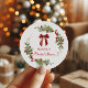 Dieser klassische runde Aufkleber kombiniert Grün, rote Beeren und eine festliche Schleife für einen zeitlosen Weihnachtslook. Eine schöne abschließende Note für Brautduschen-Mitgebsel, Kerzen oder Dankesumschläge – ideal für Feiertage oder Winterfeiern.