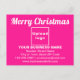 Frohe Weihnachten! Einer der bekanntesten Feiertage des Jahres. Es ist auch eine der besten Jahreszeiten, um Ihr Unternehmen zu werben oder Ihren Markennamen für Kunden oder Kunden zu fördern. Postcard Karte, die Sie anpassen können, um Ihre geschäftliche Marke und mit Weihnachten Gruß. Passen Sie es an und nutzen Sie es, um Ihre Kunden oder Kunden zu Weihnachten zu begrüßen und als Marketing-Material, um Ihr Unternehmen zu werben oder Ihren Markennamen zu fördern. Anpassbare Postkarte, mit der Sie Markenbewusstsein schaffen können. Designfarben sind weiße Texte auf rosa Hintergrund. Um diese Postkarte anzupassen, laden Sie Ihr Firmenlogo hoch, geben Sie Ihren Firmennamen, Ihre Adresse, Telefonnummer, E-Mail und Website oder Ihre Social Media-Seite ein. Bitte Karo des Erscheinungsbildes nach dem Hochladen von Logos und Schriftzeichen. Wenn Ihnen das Aussehen gefällt, können Sie jetzt Ihre Bestellung aufgeben. Wenn Sie das Logo und die Texte ändern und verschieben müssen, um auf diese Postkarte zu passen, ändern Sie bitte das Design-Tool. Sie können auch die Hintergrundfarbe, die Farbe des Schriftartes und den Stil des Schriftartes im Designwerkzeug ändern. Sie können auch Bilder und Texte auf der Rückseite dieser Postkarte im Designwerkzeug hinzufügen. Frohe Weihnachten! Wir wünschen Ihnen mehr Umsatz in diesem Urlaub.