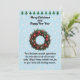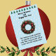 Unsere Weihnachtsgrüße Weihnachtskarte erklärt die Bedeutung des Kranzes und wie er sich bis Weihnachten Krawatte. Das Bild und die Wörter werden auf einem hellblauen Hintergrund mit kleinen Weihnachtsbaummotiven gedruckt. Alle Texte sind auch anpassbar.