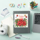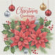 Weihnachtsgrüße, bunte Poinsettien mit festlichen Ornamenten.