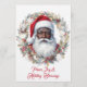 Teilen Sie den Geist der Saison mit dieser eleganten Weihnachtskarte mit einem wunderschön detaillierten schwarzen Weihnachtsmann, der von einem frostigen Winterkranz aus Pinienzapfen, Beeren und funkelnden Schneeflocken umrahmt wird. Sein warmer Ausdruck und die klassische rote Weihnachtsmannmütze bringen zeitlose Weihnachtszauber und herzliche Darstellung in Ihre Feier. Perfekt für Weihnachtskarten-Packs, Geschenkeinlagen, Weihnachtspapier und Liebhaber festlicher Dekorationen, die Kunst wollen, die magisch, bedeutungsvoll und inklusiv wirkt.