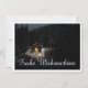 Weihnachtsgrüße mit einem Hexenhaus in einer zauberhaft weiß verschneiten Winterlandschaft
