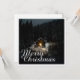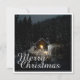 Die Karte zeigt eine stimmungsvolle, winterliche Szene mit einer kleinen, beleuchteten Holzhütte inmitten eines schneebedeckten Waldes. Die warme Lichtquelle im Inneren schafft einen schönen Kontrast zur dunklen, friedlichen Umgebung. Die elegante weiße "Frohe Weihnachten" verleiht dem Motiv eine festliche Touch. 🎄 ✨