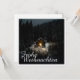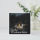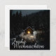 Die Karte zeigt eine eindrucksvolle, winterliche Szenerie mit einer kleinen, eucht eten Holzhütte inmitten eines verschneiten Waldes. Die warme Lichtquelle im Inneren einen schönen Kontrast zur Dunklen, friedlichen Umgebung. Der elegante "Frohe Weihnachten"-Schriftzug in Weiß, dem Motiv eine festliche Note. 🎄 ✨ English