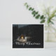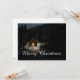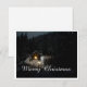Die Karte zeigt eine stimmungsvolle, winterliche Szene mit einer kleinen, beleuchteten Holzhütte inmitten eines schneebedeckten Waldes. Die warme Lichtquelle im Inneren schafft einen schönen Kontrast zur dunklen, friedlichen Umgebung. Die elegante weiße "Frohe Weihnachten" verleiht dem Motiv eine festliche Touch. 🎄 ✨