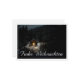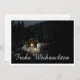 Die Karte zeigt eine eindrucksvolle, winterliche Szenerie mit einer kleinen, eucht eten Holzhütte inmitten eines verschneiten Waldes. Die warme Lichtquelle im Inneren einen schönen Kontrast zur Dunklen, friedlichen Umgebung. Der elegante "Frohe Weihnachten"-Schriftzug in Weiß, dem Motiv eine festliche Note. 🎄 ✨ English